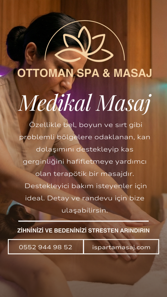 Medikal Masaj Isparta Medikal Masaj Medikal masaj, özellikle belirli bölgelerdeki kas gerginliği hissine odaklanan, daha hedefli bir masaj yaklaşımıdır. Ottoman...